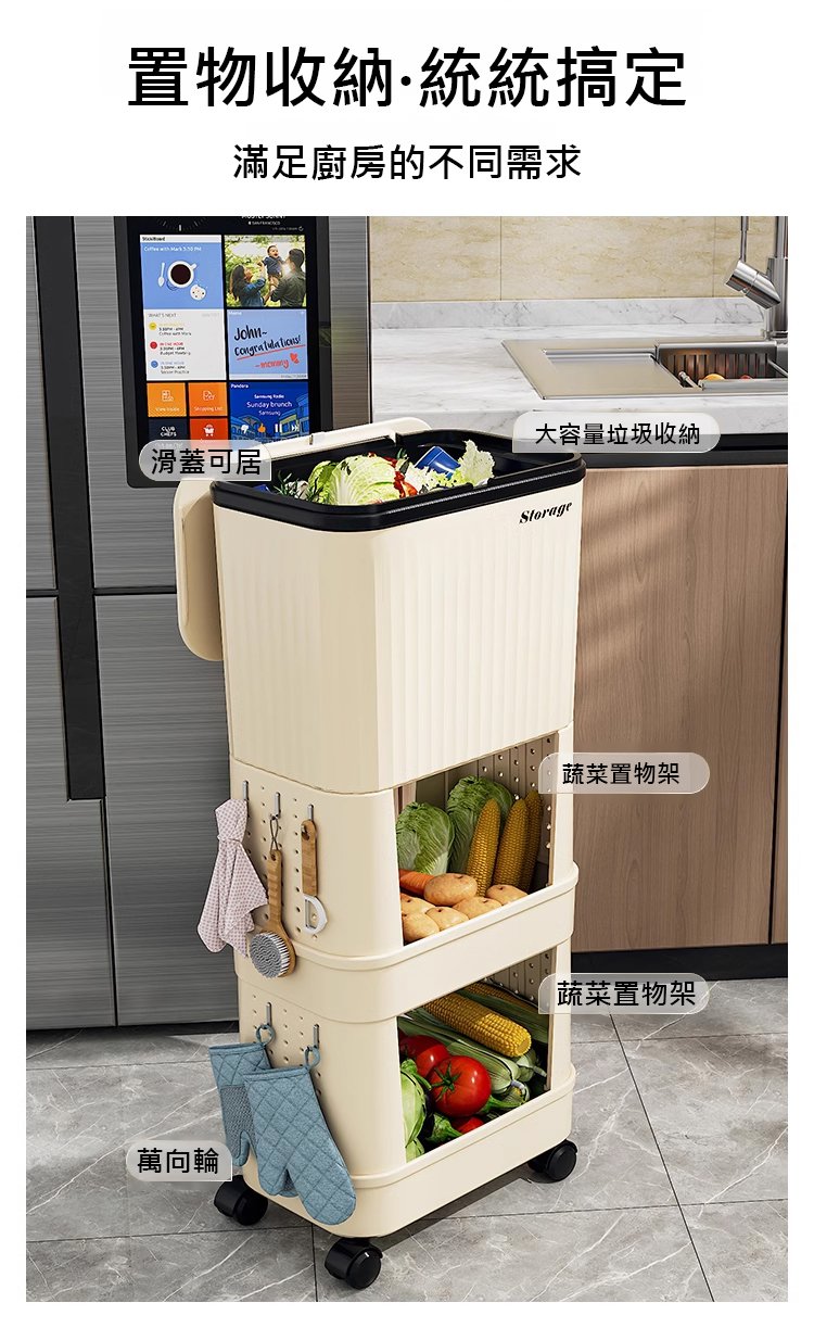 半小時前【不彎腰】家用可移動多功能置物垃圾桶 - 【超殺*贈20垃圾袋】1入組$279