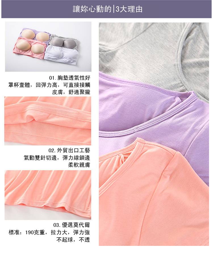 4分鐘前【廠家直銷 買一送一】夏季爆款莫代爾帶胸墊可外穿家居短袖,一體式無鋼圈設計,方便舒適,告別鋼圈束縛,柔軟莫代爾面料,不舒服包退!限時售價!買到賺到 - 【買一送三】任選4件 均價299